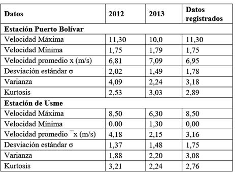 El registro de datos para las estaciones de Puerto Bolivar y Usme se pueden observar en la tabla 3.