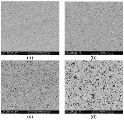 En estas muestras no se utilizaron inhibidores de crecimiento de grano tales como Cr3C2 o VC, que tienen como tarea reducir la solubilidad de las partículas sólidas, reducir la difusión y afectar las propiedades de la interfase partícula matriz para entorpecer la disolución o la reprecipitación de las diversas especies de la partícula [9]. Estos aditivos muestran su mayor influencia a temperaturas de sinterización bajas y, como sería de esperar, su adición es perjudicial para la densificación de los materiales, por lo que su adición debe ser controlada cuidadosamente [10]; esta puede ser una de las razones por las cuales las aleaciones comerciales no poseen inhibidores.