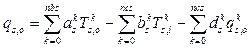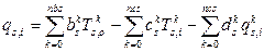 (2)Where qsi/so are the conduction heat flux from the wall at the inside/outside surface. Ts,i/s,o the inside/outside surface temperature. These time series equations in terms of surface temperatures and heat fluxes are evaluated at equal time intervals. The superscript k refers to the term in the time series. The current time is k = 0, the previous time is for k = 1, etc. The timebase on which these calculations are based is specified by the user within the TRNBUILD description. The coefficients of the time series (a's,b's, c's, and d's) are determined within the TRNBUILD program using the z-transfer function routines.