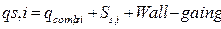 (6)Where, qcomb,s,i/o is combined convective and long wave radiation of inside/outside surface. hconv,s,o, is the convective heat transfer coefficient on the surface of the wall, Ta,s, is the ambient temperature , Tfsky, fictive sky temperature. The Stephan-Boltzmann constant is describe by σ and εs is the long-wave emissivity of the surface. Then, total heat gain through inside and outside surface of the wall are, equations 7 and 8: