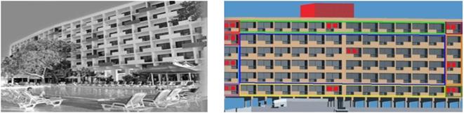 The building considered in the study is a hotel with 149 rooms available for tourism. The main building has a capacity of one hundred thirty six rooms (136), and also features a block of thirteen (13) cabins located in the pool area. It is constructed with a concrete structure with exterior walls double block of six inches, an air space in the center for these walls are acoustic and interior walls of single block, with glass windows in the main building overlooking the northern part and wooden doors in the south aisle. The cabins are constructed in a similar manner except that south wall is made of glass. Shop and restaurant also have very large glazed areas with large heat gains in this area.