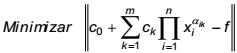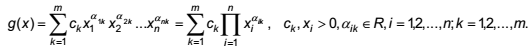 Se supone que se conocen los puntos (X(i), f(i)), i=1,2,...,N donde x(i) Є Rn son vectores positivos y ƒ(i) son constantes positivas. El problema de ajuste posinomial consiste en determinar los valores de los coeficientes Ck >0 y de los exponentes a1k , a2k ,...,ank tales que,