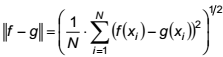 (2)Existen varias normas para establecer la proximidad entre las funciones original ƒ y la aproximante g. En el presente trabajo, la proximidad entre ƒ y g se instituye a través de la siguiente función: