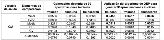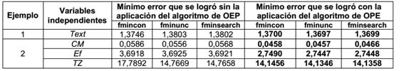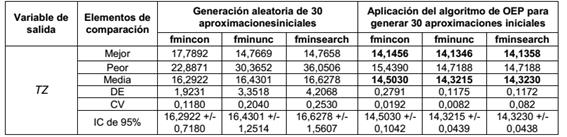 Ahora bien, para la descripción del comportamiento de la temperatura externa a partir de modelos posinomiales, se seleccionó un posinomial con tres términos. A continuación se presenta la tabla de los resultados del ajuste posinomial a través de los métodos de PNL, con y sin la aplicación de la metaheurística: