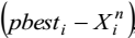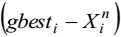 respectivamente. La representación pbesti se corresponde con la anterior mejor ubicación de las partículas, mientras que gbest es la posición de la mejor partícula, es decir, la partícula que ofrece el menor valor de la función objetivo.