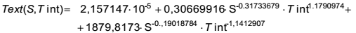 A partir del procedimiento de cálculo de la distribución de la temperatura en la pared, se genera un fichero de datos compuesto por 360 puntos, que se logran al fijar las variaciones ΔTint = 20ºC y ΔS = 6 mm, donde Tint y S varían de 1020 0C a 1300 0C y 108 mm a 246 mm, respectivamente. Una vez que se logra la base de datos, la tarea consiste en buscar un modelo posinomial para estimar Text como una función que depende de S y Tint.