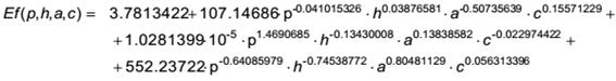 El mejor modelo que se logró ofrece un error de 0.0457, con el coeficiente de determinación múltiple R2 = 99.32% y se corresponde con la siguiente expresión matemática: