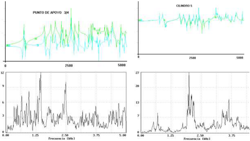 Comparing the graphics it is possible to establish if peaks in measurements are a consequence of forces applied in specific points or owes to another source. All measurements were made in a machine with more than 180 000 km, (about 60 % to general remanufacturing), so, some degree of wear should exist. Is easy to identify the similarity in peak distribution in both figures, regarding its frequencies.