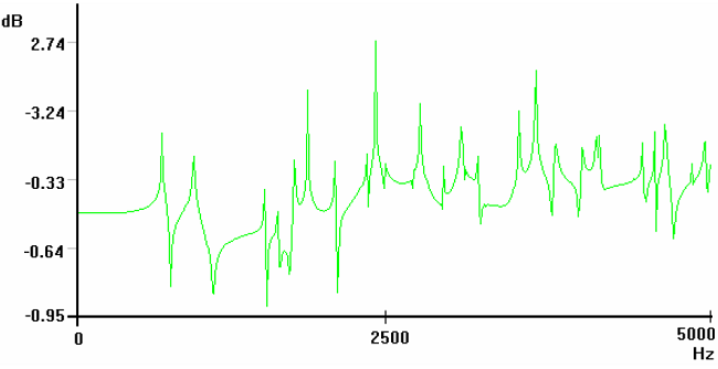 As can be seen, a great number of peaks exist in each graphics; this is because the system have an infinite number of degrees of freedom and natural frequencies associated. When the system is modeled both are reduced to a finite number with limited movement, and from this group only those which frequency is below the excitation upper frequency limit are activated. Taking into account that in each model are about 120 degrees of freedom, and not all natural frequencies correspond to a z displacement, this the shape the graphics should present.