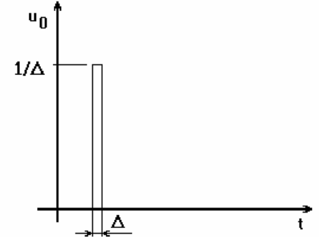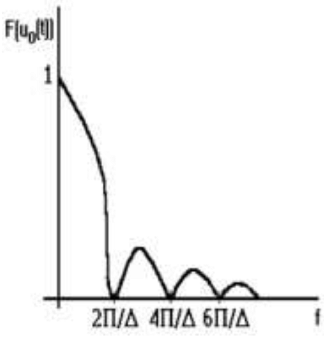 In practice, is impossible to reduce the impulse time to 0, so, its Fourier transform is slightly different, taking the shape in figure 4.