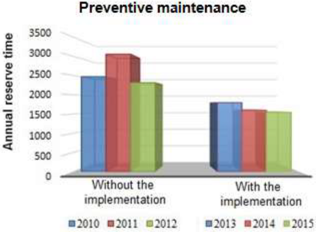 It was used around 34,348.71 and 20,394.68 hours per year to perform preventive and corrective maintenance tasks in the period 2010-2012 and 2013-2015 respectively. With the incorporation of soft-computing generics algorithms, it was achieved a reduction of 13,994.03 hours per year, which translates as an increase in the equipment availability indicator.