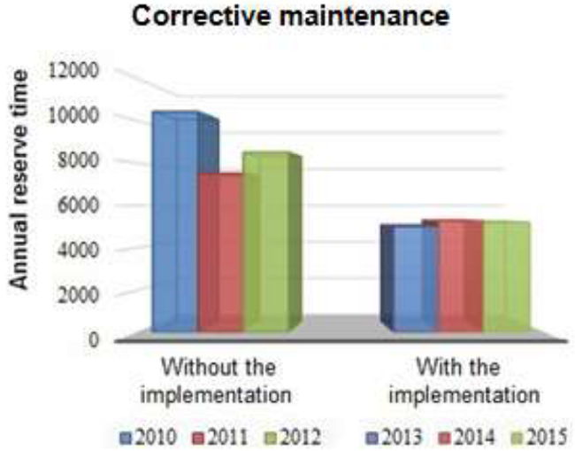 From the incorporation of the algorithms developed in the GEMA computer application, an improvement in the planning and control of the preventive and corrective tasks of the company has been achieved. The following statement can be verified by means of the graphs of figure 5 and figure 6, where are proved the effectiveness of the algorithms developed three years before and three years after its implementation.