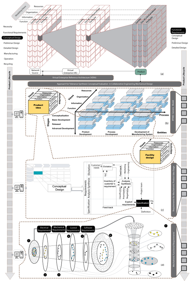 Thus, the consideration of multiple points of views is essential in a mechatronic product conceptual design process, to avoid product design decision mistakes, to shorten design-merging time and to control design quality.To develop a new approach to integrated the functional requirements analysis from conceptual design of mechatronics products, this research work proposes the use of an attached model of the Virtual Service Enterprise and a reference model that allows the enterprises to create a particular model to set-up successful IPPMD (Integrated Product, Process and Manufacturing System Development Processes) [15].
