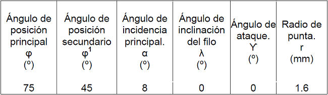 La herramienta fue afilada con la geometría mostrada en la tabla 3.