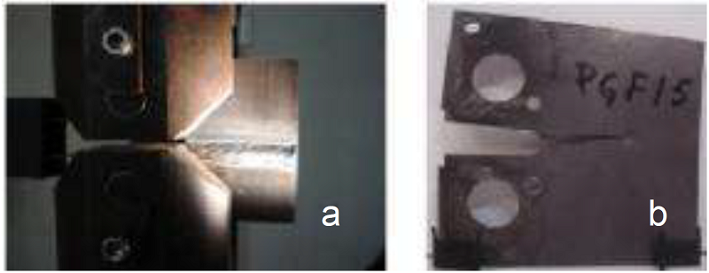 El pre-agrietamiento y la prueba de propagación de grietas por fatiga se realizaron en las probetas estándar tipo compacto (CT), a temperatura ambiente,(25 ºC), con las siguientes condiciones de prueba: