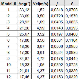 It is appreciated that for eachlouver angles j is decreasing when the velocity increases, as it corresponds to the heat exchangers.