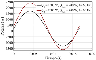 En caso de que se evaluaran para Qmax= 1500 W y Qmín = 200 W se obtienen valores de (FQ(t) ), que caracterizan con similar precisión a los extremos de la función graficada según la figura 3.