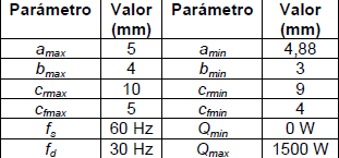 Donde: fd , es la frecuencia de ocurrencia de los eventos eléctricos y de deposición de las gotas metálicas, para CMT que oscila entre 60 y 120 Hz;fs , es la frecuencia de solidificación o del ciclo de formación de las conchas del cordón, para CMT oscila entre 11 y 37 Hz;t, es el tiempo (s);amáx, bmáx, cfmax, crmax , son los valores máximos o amplitudes del semiancho (a), profundidad de penetración (b), longitud delantera (cf ) y trasera (cr ) del baño de fusión, respectivamente, en milímetros;amin, bmin, cfmax, crmax , son los valores mínimos de las dimensiones del semiancho (a), profundidad de penetración (b), longitud delantera (cf ) y trasera (cr ) del baño de fusión, respectivamente, en milímetros;Qmax , Qmin , son los valores máximos (amplitud) y mínimos de la energía de entrada (W·m-3).
