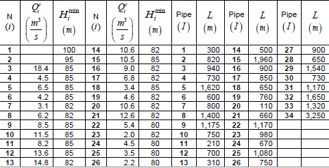 Concerning the set of parameters (II), a minimum cost of 125,311,060 rupees has been found, which is better than that found by [9], which is 125,501,130 rupees. On the other hand, it is observed that the minimum cost found with the Colebrook correlation, i.e. 134,882,470 rupees, set of parameters (IV), is greater than 125,513,720 rupees. Because of this result, a simulation with the Colebrook correlation considering the optimum network employing the HW correlation has been performed to verify if the constraints were indeed satisfied. The simulation results are presented in table 5 for roughness equal to 0.25 and 0.50 mm. It is worth noting that some head constraints are violated, indicating that the diameters are actually underestimated.