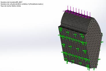 Para determinar las correcciones límites se calculó el espesor del diente por la circunferencia exterior, para ese diseño de experimentos, garantizando que ese espesor fuera mayor que el que el mínimo establecido por la literatura.Con los valores de la potencia, las dimensiones geométricas del engranaje y el número de revoluciones y aplicando las fórmulas clásicas para los engranajes cilíndricos de dientes rectos exteriores se determinaron la fuerza tangencial y la fuerza radial . Se utilizó el tipo de análisis lineal, que corresponde con la naturaleza del problema, en el software Solid Work Simulation 2018.