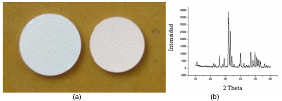 En el análisis de las fases por DRX en las placas B1 después de la sinterización se obtuvo un difractograma con los picos característicos a la HA, Figura 3 (a), Lo que indica que en estos discos no se produce cambio de fase durante el proceso de sinterizado hasta la temperatura de 1200oC.