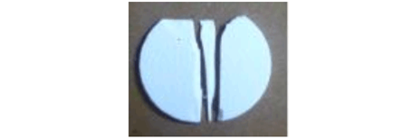 Los discos en verde para ambos materiales poseen dimensiones de 20 mm de diámetro y 2 mm de espesor. A los discos sinterizados se les determino la tenacidad a la fractura y resistencia a la compresión a través de los ensayos de dureza y de compresión diametral. En la figura 3, se muestran los discos de hidroxiapatita en estudio.