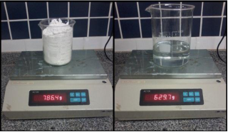 Después del pesaje de los materiales para garantizar los porcientos deseados se prepara la masa y se coloca en los moldes, donde se dejan por 24 horas para que ocurra el endurecimiento total del yeso. Posteriormente las probetas fueron puestas a secar en una estufa por siete días a una temperatura entre 40 y 50 ºC para que alcance la condición de masa constante como establece la NBR 12129 “Gesso para Construção - Determinação das propriedades mecânicas: método de ensaio”.