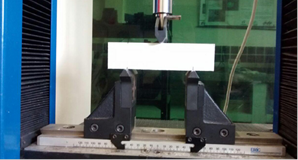 El ensayo de flexión se realizó según lo planteado en la norma NBR 13279, que establece la utilización de dos soportes de forma cilíndrica con un largo entre 45 y 50 mm, diámetro de 10±0,5 mm y distantes uno de otro a 100±0,5 mm. La carga se aplica con un tercer elemento cilíndrico que tendrá las mismas dimensiones de los soportes y se colocará en el centro de la distancia entre los apoyos como se muestra en la figura 3.