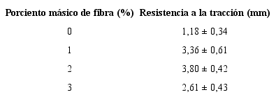 Este trabajo ha permitido demostrar queel mejor resultado se obtuvo en los compuestos con un 2 % de fibra incorporado, mientras que la resistencia a la compresión se encuentra dentro del rango obtenido en otros trabajos.