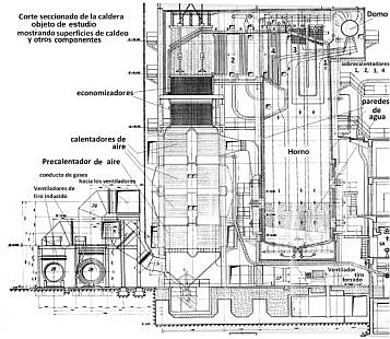 Una vez obtenidoslos datos necesarios, así como el dimensionamiento de las superficies y su ubicación relativa se procede al desarrollo del cálculo normativo adaptado a las condiciones impuestas. Dado lo extenso de este tipo de cálculo solamente se mostrará la parte relativa al cálculo del horno y del calentador de aire, aunque al final se relacionan lo resultados generales.