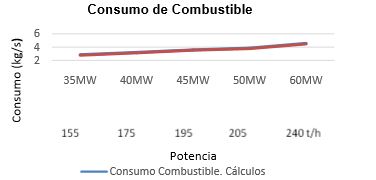 En estos gráficos se puede observar que tanto los valores el consumo del combustible, figura 2, como de la eficiencia bruta del generador de vapor, figura 3, determinados mediante el software empleado, se encuentran muy cercanos a los valores de la norma de explotación de la central, por lo que se puede afirmar que los resultados obtenidos son satisfactorios.
