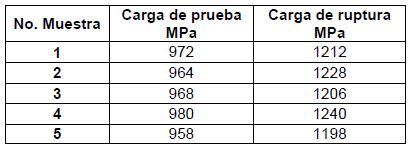 En la tabla 3 se muestran los resultados de la resistencia a la tracción de algunos de los pernos no averiados. El ensayo de resistencia a la tracción se realizó en una máquina de ensayo IBERTEST modelo IBMU-4C-1000-DW. Para el ensayo se tomaron pernos de la zapatas que no se habían desprendido producto de la avería.