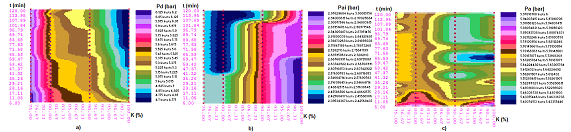 El comportamiento de los indicadores se muestra en la figura 2 en donde se observa la tendencia de las presiones a disminuir, a excepción de la Pai que se incrementa para cada K. Las temperaturas aumentan en la medida que se incrementa K.