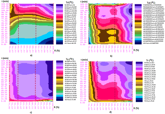 Seguidamente para estimar y pronosticar el comportamiento de las variables Td, Ta, Tai, Tr, Pd, Pa y Pai, se obtienen los modelos y los gráficos de isofranjas en 2D, figuras 3 y 4. Nótese la similitud entre los resultados de los gráficos y el comportamiento de los indicadores descritos de la figura 2, lo que demuestra la eficacia de los modelos a través del estimador UPD.