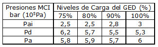 Como resultado se considera que la tendencia a disminuir de la Pa y de la Pd indica que el MCI necesita mantenimiento, aunque está dentro de los rangos normados por el fabricante, tabla 2; que la tendencia a aumentar de la Pai representa que el sistema de combustión del MCI está operando de forma eficiente.