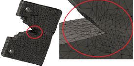 Para la probeta escaneada se utilizó una malla sólida, con elementos cuadráticos de alto orden de un tamaño máximo de 4,14539 mm en la parte de malla gruesa y de 1,2 mm para el control de malla utilizado en las cercanías de la grieta respectivamente, figura 3.