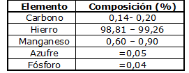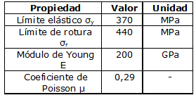 La composición química y las propiedades mecánicas del acero están en las tablas 1 y 2 respectivamente