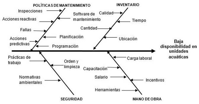 Palabras claves: disponibilidaddisponibilidad,causa-efectocausa-efecto,paretopareto,causas potencialescausas potenciales.