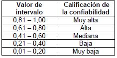 Sus valores oscilan entre 0 y 1,00 [10]. Se aplicó al total de la población estadística de estudio, que fueron los doce expertos. La magnitud del coeficiente de confiabilidad es calificada por la siguiente escala, tabla 3: