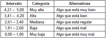 Para la obtención del resultado final al aplicar las entrevistas estructuradas se utilizó la escala de Rensis Likert, tabla 4 [10], que considera categoría, intervalo, rango y cinco posibles evaluaciones. Se empleó la media aritmética para la interpretación de los resultados.