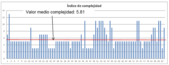 El modelo matemático de complejidad, partiendo de los resultados de la tabla 2, se muestra en la ecuación 3: