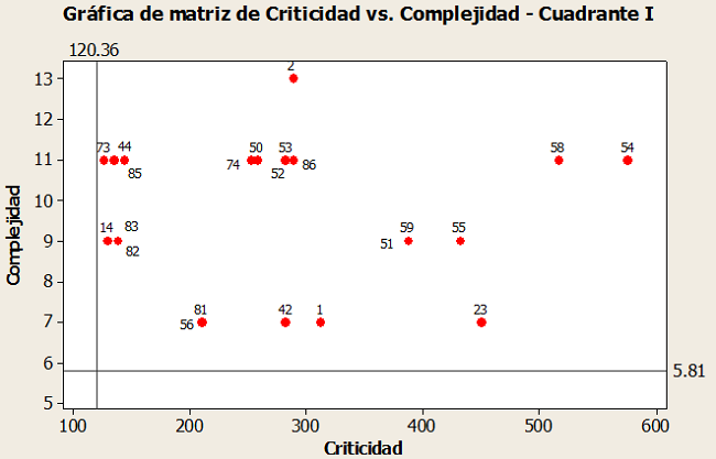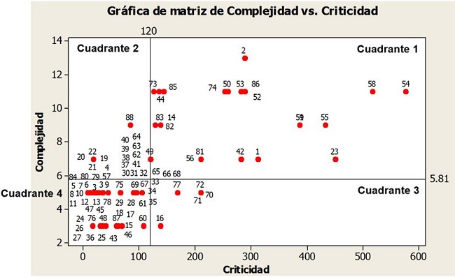En la figura 5 se muestran los activos ubicados en el I cuadrante de la matriz de criticidad versus complejidad.