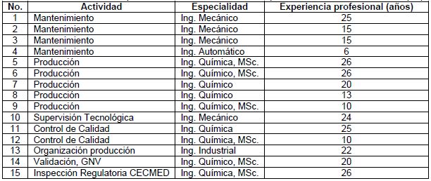 Se forma un grupo compuesto por 15 especialistas y proponen las herramientas para validar los modelos propuestos, los cuales a través de una encuesta determinan las variables a utilizar en los modelos matemáticos, obtiene los modelos matemáticos para la criticidad y complejidad, formulan los principios y premisas de la tecnología. En la tabla 1 se muestra el listado de las características de los especialistas.