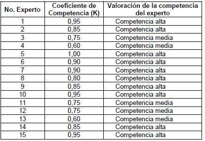 Para la implementación se seleccionó un área de una empresa biofarmacéutica, aplicando la herramienta de análisis de expertos al grupo de especialistas, tabla 1, se obtuvieron los resultados de la tabla 2, estos indican que todos los especialistas pueden ser tomados como expertos.