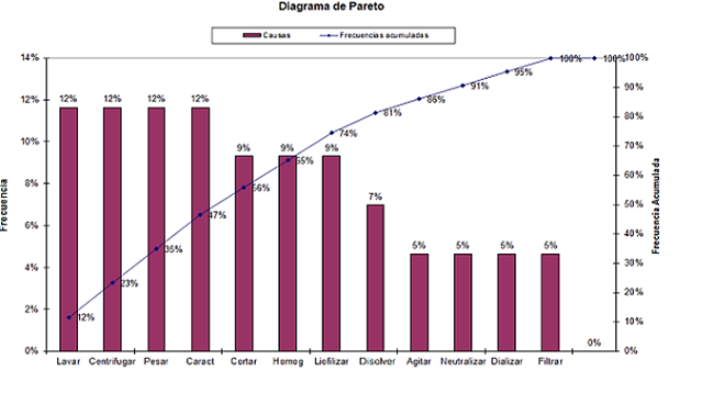 Este análisis permitió establecer las prioridades y enfocar los esfuerzos donde se puede tener mayor impacto. En este sentido, el diagrama de Pareto [6] refleja claramente la idea del pensamiento estadístico.