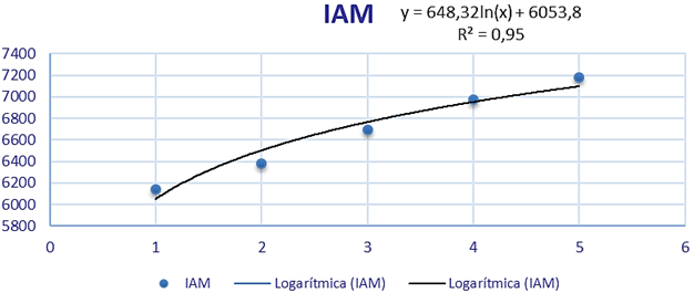 Analizando el comportamiento entre los años 2011-2015 de las defunciones causadas por infarto agudo del miocardio (IAM) y el número de operaciones realizadas de cirugía cardiovascular, angiología y cirugía endovascular tomados del Anuario Estadístico de Salud, se obtiene un comportamiento que se refleja según el gráfico que se muestra en la figura 2.