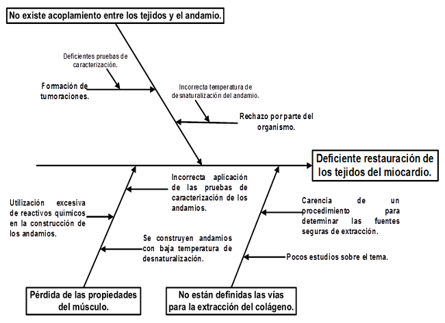 Haciendo una revisión de los principales problemas que presentan hoy las enfermedades cardiovasculares principalmente las relacionadas con el infarto agudo del miocardio se elabora un diagrama causa-efecto que se muestra en la figura 5 en el cual se reflejan las principales deficiencias que deben ser resueltas para satisfacer las necesidades.