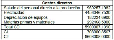 La tabla 2 muestra el total de gastos en los que se incurren para la obtención de las matrices