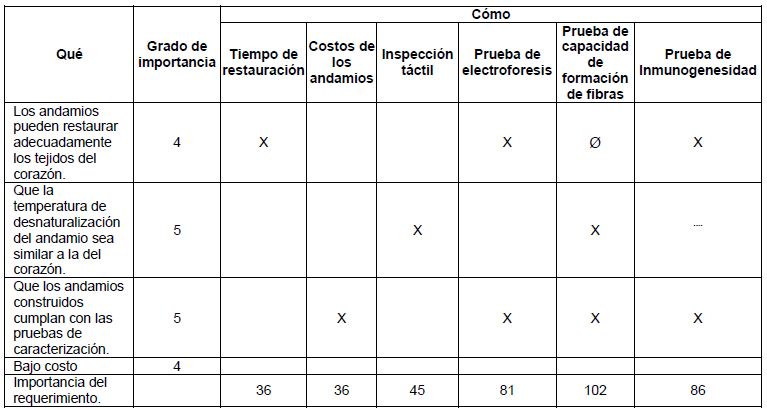 Los proveedores tratan de enmarcar para la comercialización de un producto las características para el uso y el tratamiento de los mismos con los requerimientos de calidad para ser vendidos a los clientes. Por esa razón las matrices de colágeno que se lanzan al mercado tienen parámetros establecidos según necesidades de los clientes. Con vistas a ello se aplica parcialmente la técnica de QFD con el objetivo de cumplimentar las demandas de restauración adecuada, temperatura de desnaturalización igual o ligeramente superior al corazón, bajo costo.