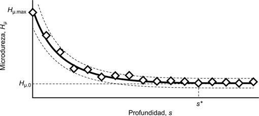 Por su parte, la profundidad de endurecimiento, s*, se toma como aquella profundidad donde los valores de dureza han convergido a la del núcleo del material.